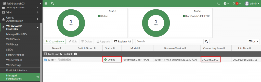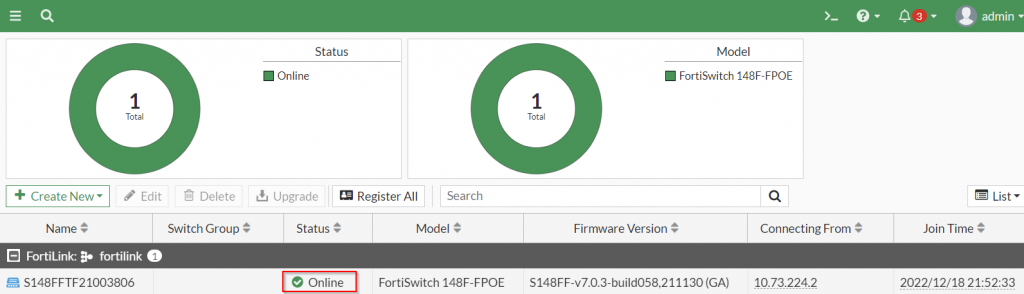Once the FortiSwitch shows online, FortiGate oriented configuration changes can be performed.