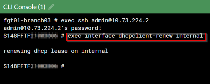 At this point, everything is in place for the FortiSwitch to update its IP address to the new scheme. However, the default lease time assigned to the FortiSwitches is 604800 seconds which corresponds to 7 days. In the event that you do not want to wait up to 7 days to confirm whether or not this works, you can manually force a DHCP IP address renewal directly from the FortiSwitch. To do this, you can connect to the CLI of the FortiSwitch and issue the following commands: